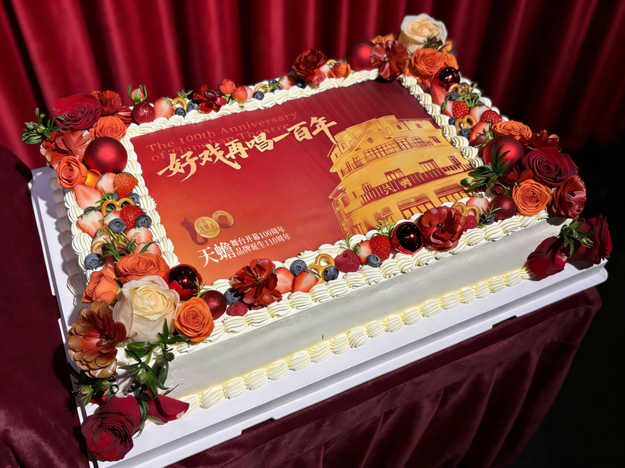 随着天蟾逸夫舞台总经理潘熠文手中的铜锣敲响,一场跨越世纪的庆典大幕正式拉开。昨晚,上海京剧院在此献演封箱大反串剧目《拾玉镯·法门寺》,以满堂的喝彩与笑声为百年天蟾庆生。演出谢幕时,幸运观众与演职人员共同分享生日蛋糕,在甜蜜与戏韵中见证这一历史时刻。